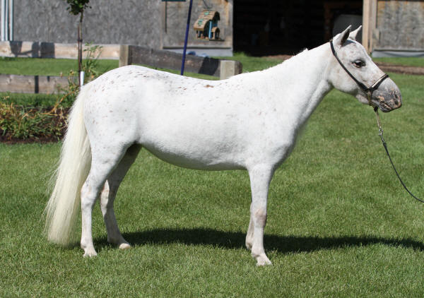Jewel's dam is a daughter of tiny leopard Mardi Gras Order of Polka Dots who was by the beautiful leopard Crescents Rhett Butler. Her dam is also a granddaughter of the famous Hidden Meadows Missing Link who was by the 1982 Reserve National Champion stallion Shadow Oaks Paul Bunyan. Paul Bunyan sired many World champions in both halter and driving along with many other top show horses.